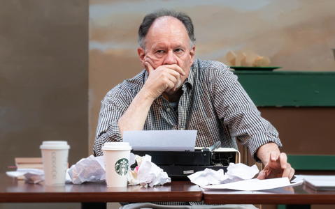 "...Leatherwood's bumbling but lovable Agamemnon [in Theater Galatea's production of Put Out: An Adulterated Farce] quickly drives his secretary to a near-murderous mood as he splays his neediness every which-way..."