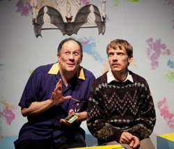 "...In the center of it all is veteran actor Blair Leatherwood, playing a president who hears voices, which could be coming from outer space. Leatherwood is deliciously deranged [in Beyond the Proscenium's production of Richard Foreman's Symphony of Rats]..."